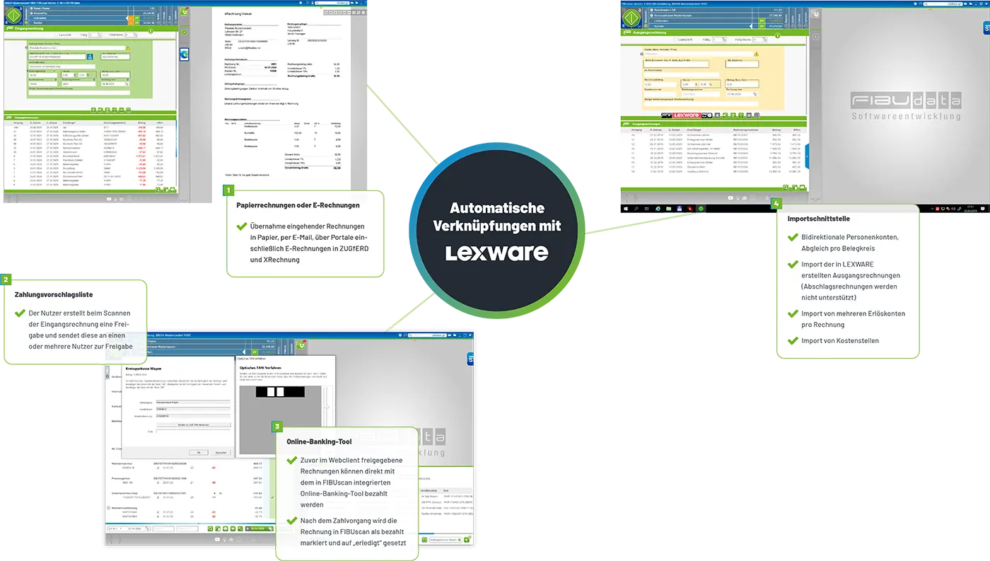 FIBUscan zeigt Ihnen jederzeit aktuell alle Außenstände und Verbindlichkeiten – nahtlos eingebunden in die Kunden- und Objekthistorie von LEXWARE!